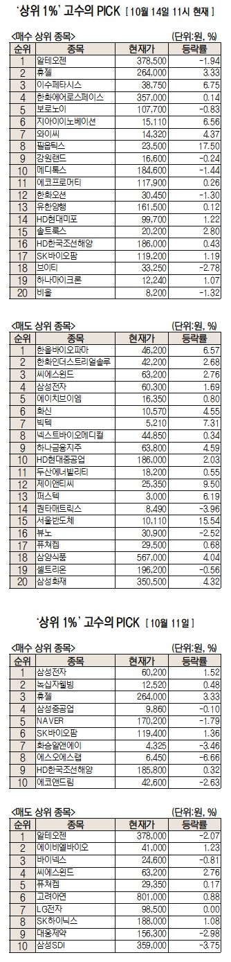 [주식 초고수는 지금] '저가 매수 기회' 알테오젠, 순매수 1위