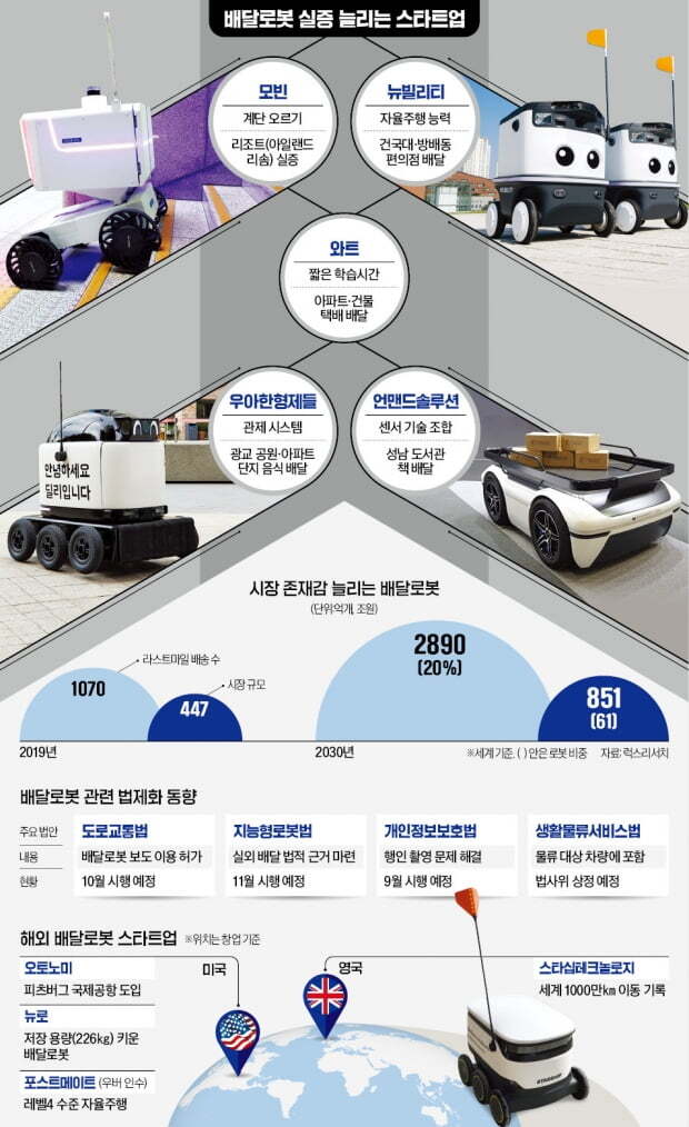 국내에서는 올 상반기 배달로봇 법안들 차례로 통과