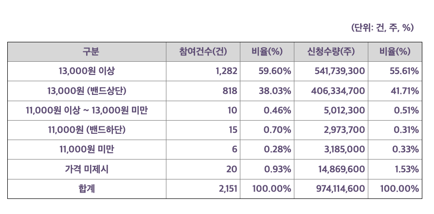 희망 공모가 밴드 : 11,000원~ 13,000원