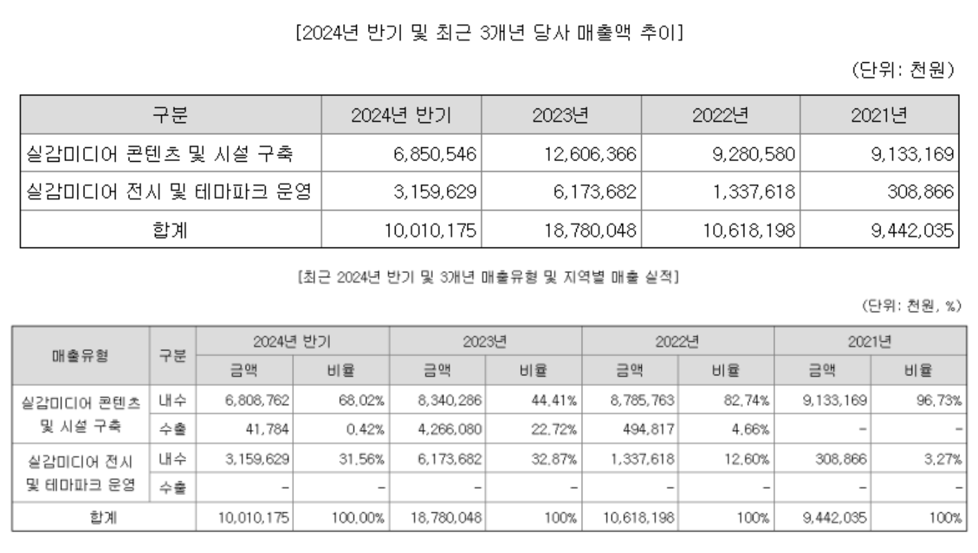 닷밀실감미디어 B2G 수주사업과 실감미디어 B2B 수주사업, 실감미디어 테마파크 사업(B2C)으로 나눠져 있습니다.