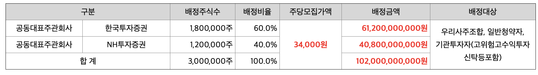 공모주식수 : 300만주 (1,020억원)