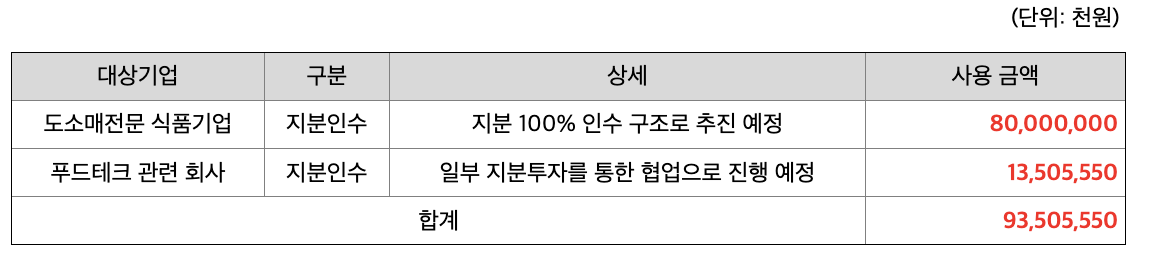 (2) M&A 및 지분투자를 통한 타법인증권 취득자금 (93,506백만원)