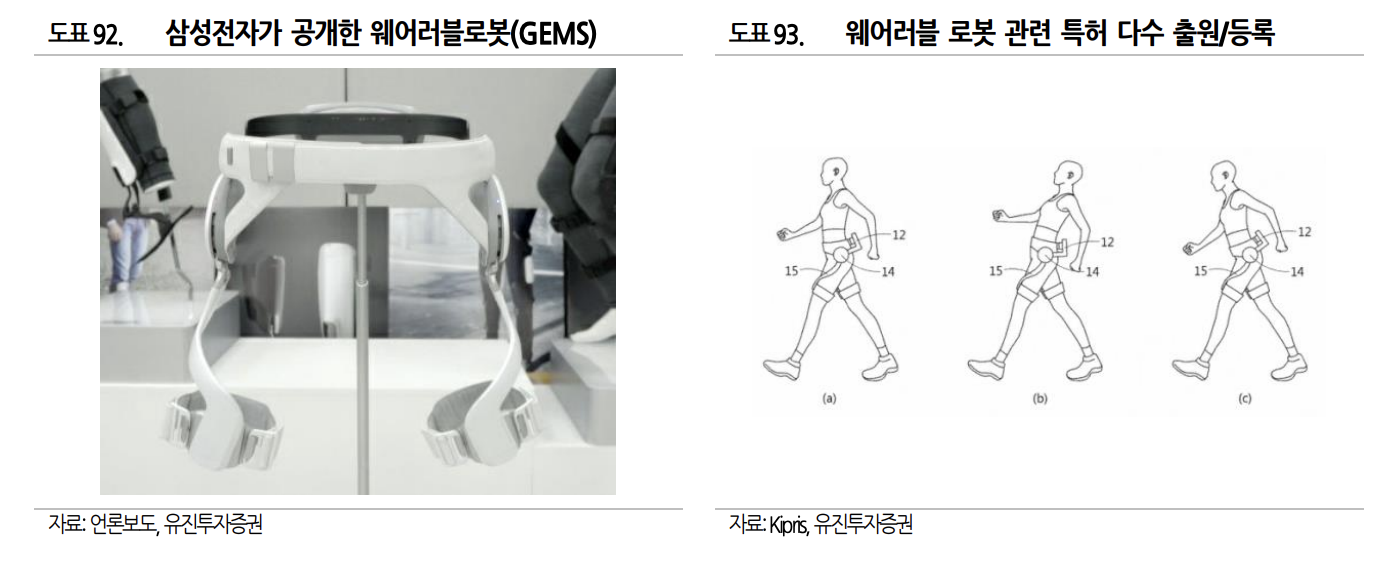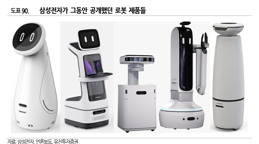 삼성전자는 첫번째 로봇으로 운동 보조 로봇인 웨어러블 로봇 출시를 시작으로 과거 CES에서 선보였던 다양한 로봇 콘셉트 또한 실용화될 가능성이 높습니다. 삼성전자는 로봇 사업의 생태계 확보를 통한 중장기적인 성장 동력 확보를 위한 치밀한 준비를 추진하고 있는 것으로 파악됩니다.
