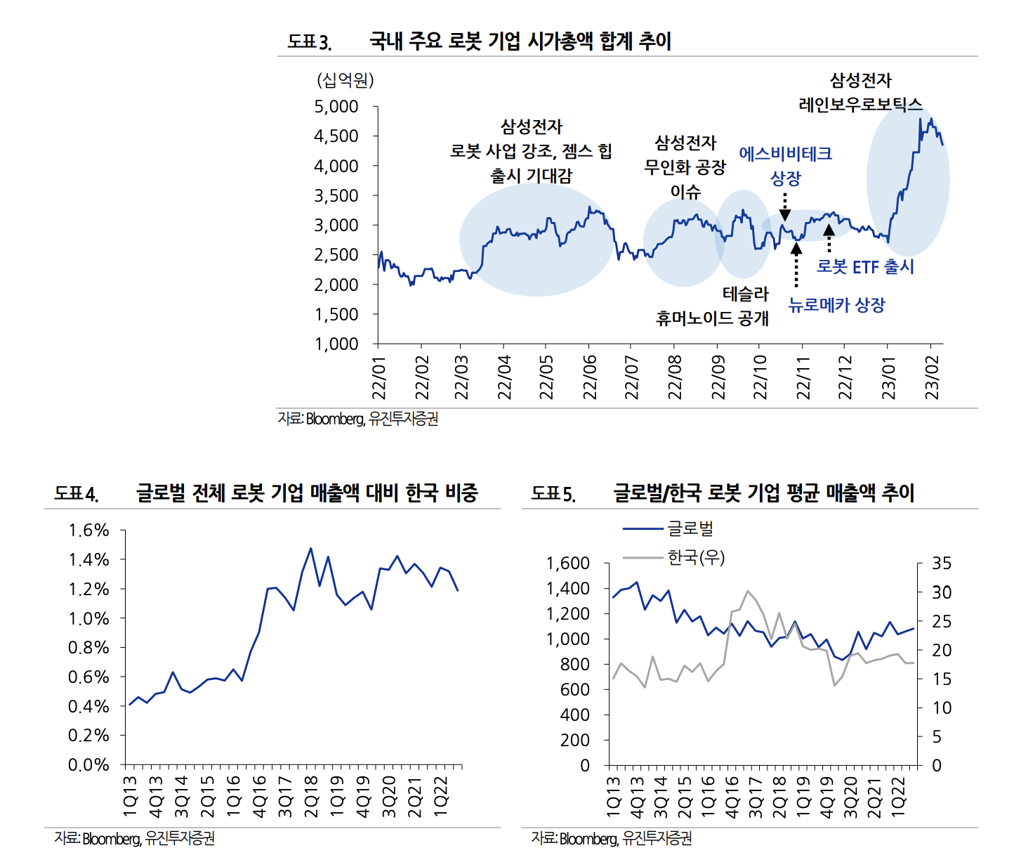 코로나 이후 많은 것이 달라졌지만, 그중에 하나 언제부터인가 식당이나 무인 카페 등에서 로봇을 흔하게 볼 수 있게 된 것처럼 이미 로봇은 우리 생활 가까이 다가오고 있습니다. 인건비 상승과 노동력 부족 등으로 인해 가깝게는 서비스 현장부터 산업 전반에 로봇 수요가 증가하게 된 것 같습니다. 주식 시장에서도 삼성전자가 코스닥 상장 로봇 업체인 레인보우로보틱스에 590억 원을 투자하기로 하면서 연초부터 로봇 산업에 대한 관심이 뜨거웠고, 현재도 2차전지, AI와 함께 로봇에 대한 관심들이 집중되고 있습니다.