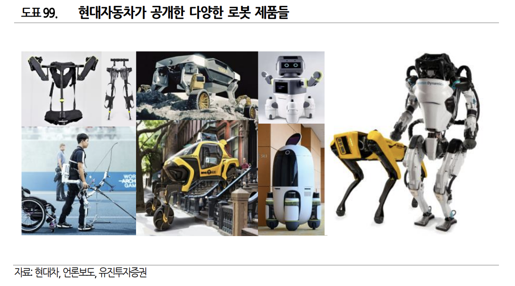 현대자동차는 자동차 제조기업으로 세계 최대규모의 로봇 수요 기업이자 미래 사업에서 로봇을 빼놓을 수 없는 기업으로 제조 현장에서 작업자의 안전과 효율을 증대하는 웨어러블 로봇, 자동차 그 자체의 로봇화, 자율주행 기술을 접목한 실내외 자율주행 로봇, 보스턴 다이내믹스와의 협업을 통한 지능형 로봇 개발 등 폭넓은 로봇 사업 성과에 기대하고 있습니다.