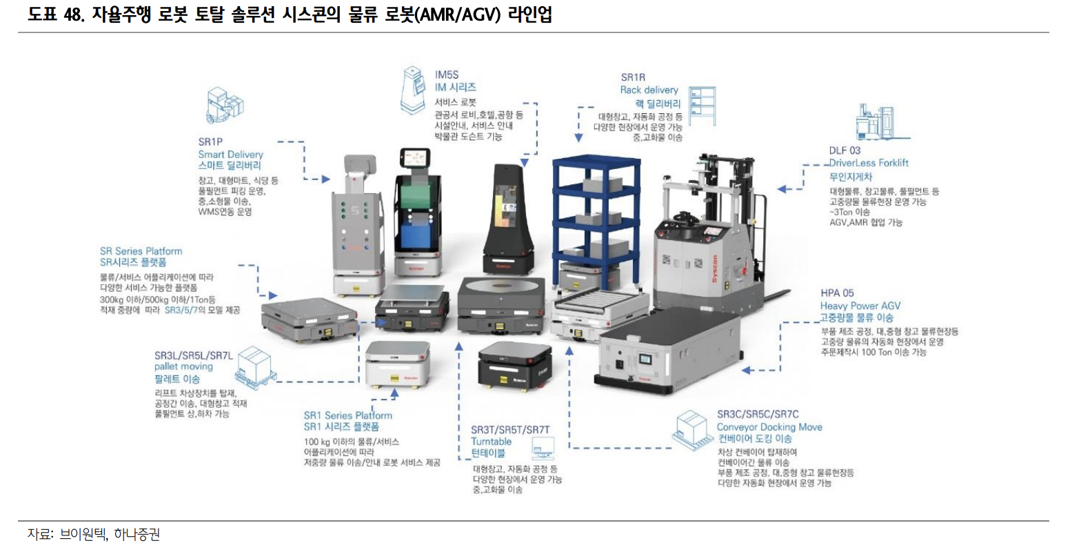 자율주행 물류 로봇 사업은 전략적 투자자인 밀레와 함께 연구 개발중으로 AMR 물류 로봇 '고카트'는 적재하중별로 라인업을 갖추고, 제조 및 물류 산업을 중심으로 해외 기업과의 협업을 통한 매출 확대가 기대됩니다.