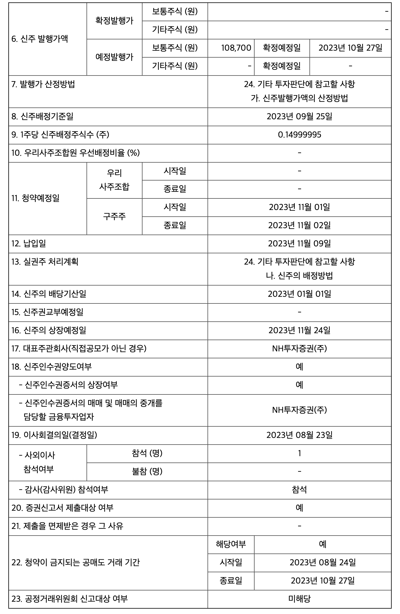 - 신주의 상장예정일 : 2023년 11월 24일