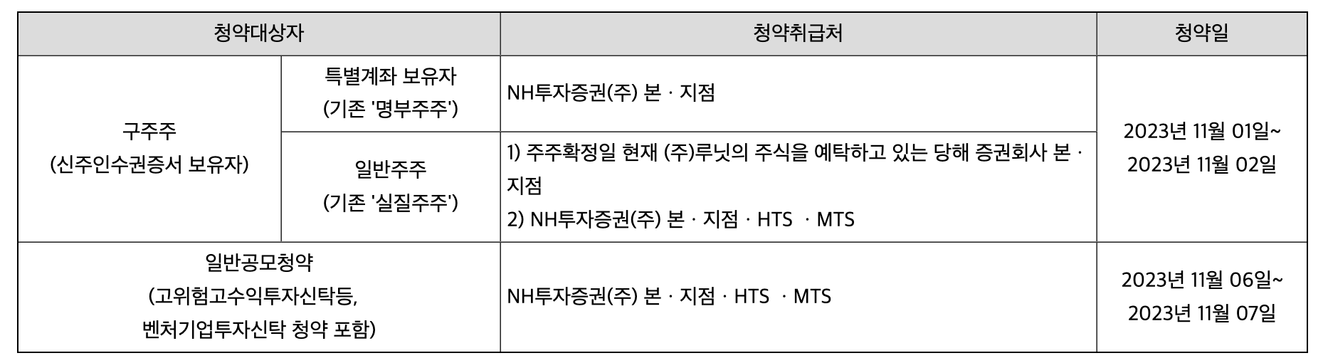 - 구주주 청약 예정일 : 2023년 11월 1일 ~ 11월 2일