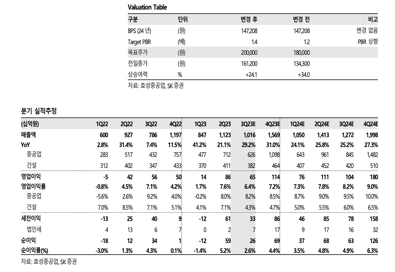 • 고마진 수주잔고가 매출액으로 인식되면서 중공업부문 수익성 개선