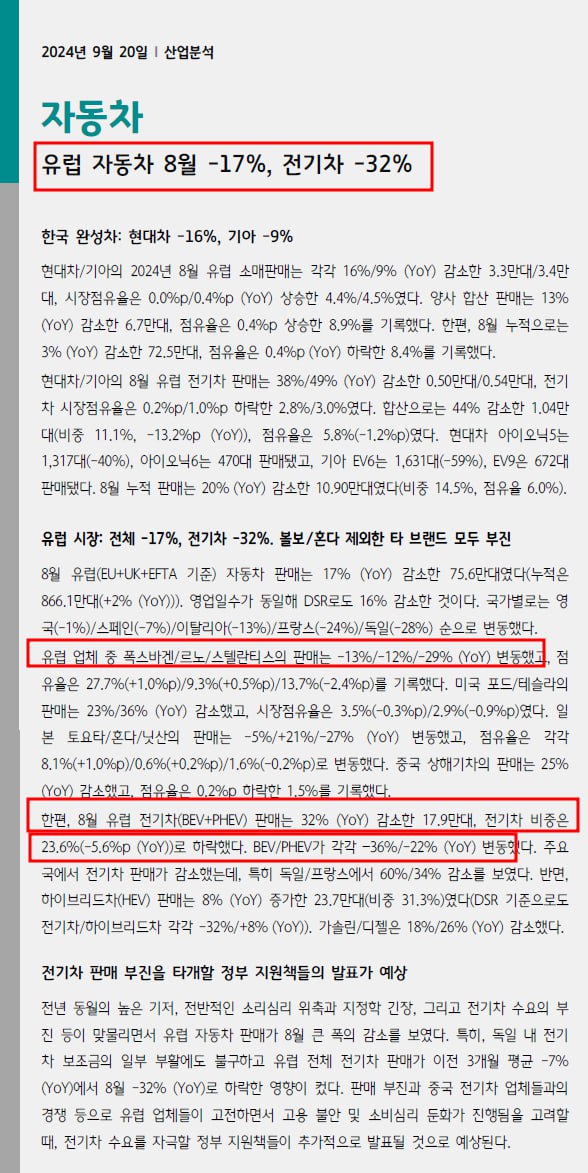 전기차 판매 급감 -32% 감소.