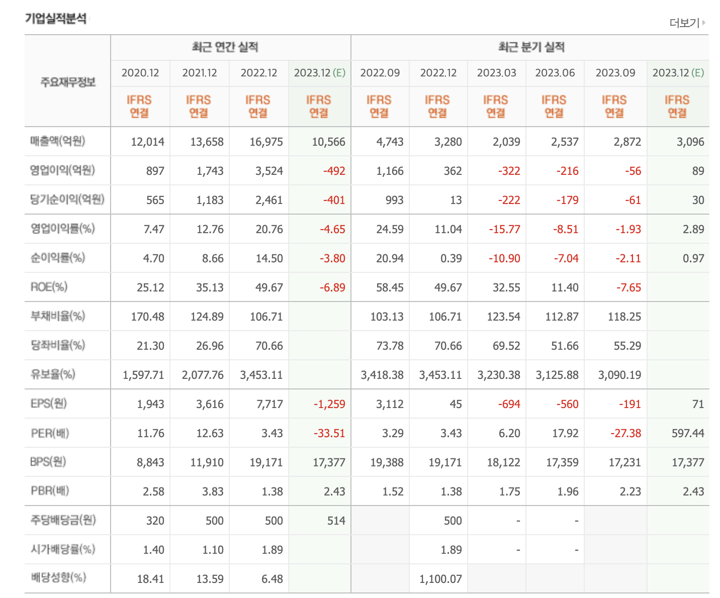 23년에는 수요 둔화와 추가 감산으로 메모리 업황이 고전했지만, 24년에는 메모리 업황이 반등이 기대됩니다. 심텍은 메모리향 매출비중이 절대적으로 높은 업체로 24년 실정 상향이 기대됩니다.