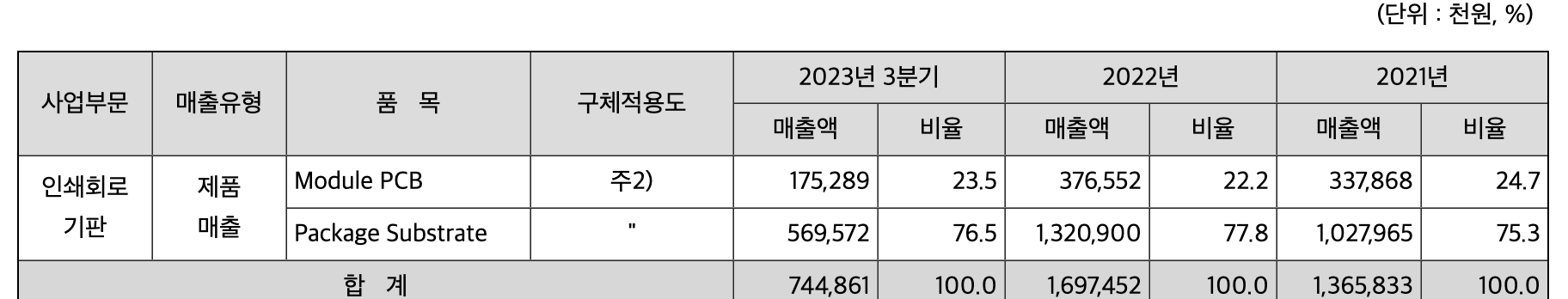 - 삼성전기, LG이노텍 : 기판의 비중이 작음