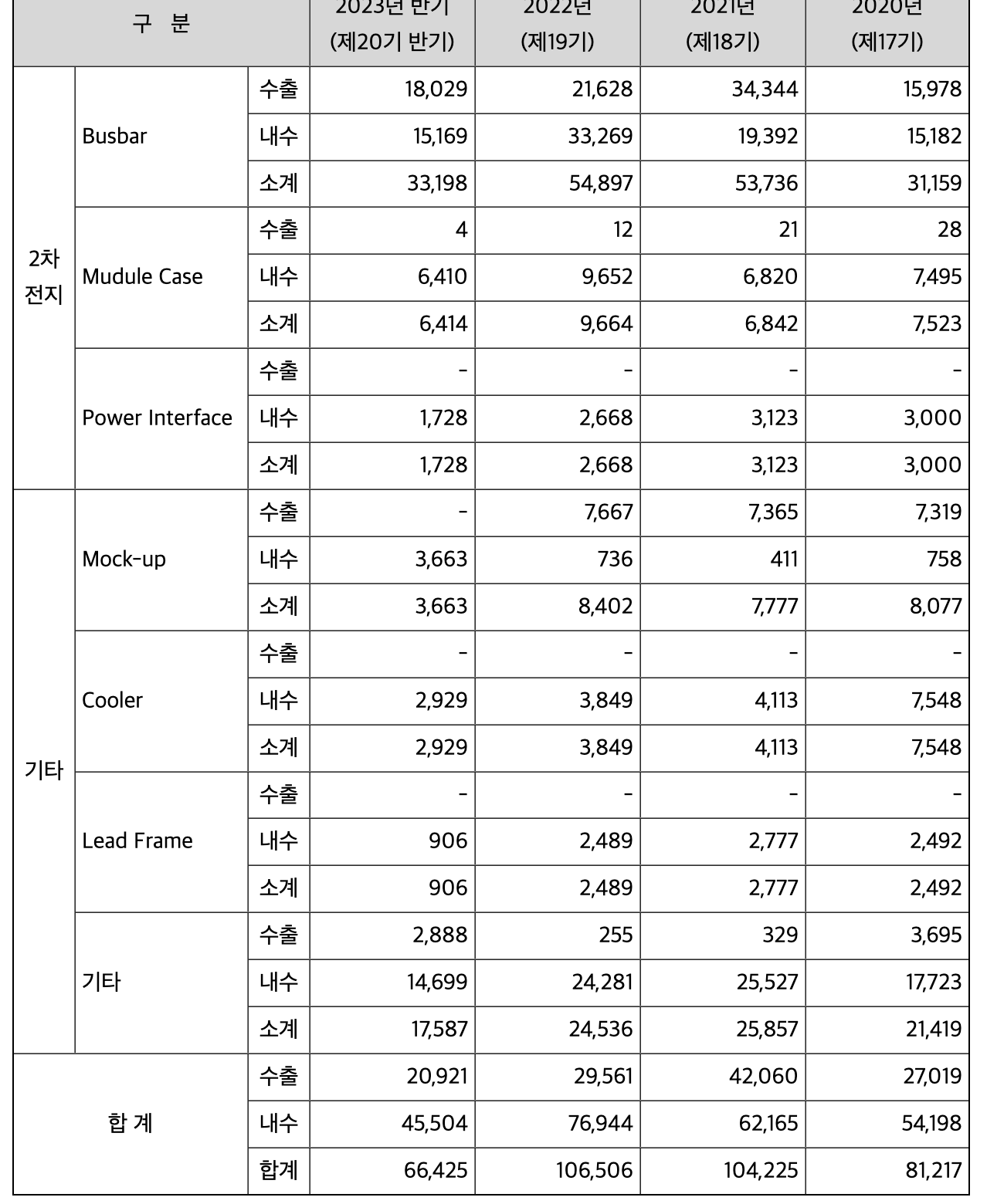 차량부품은 현재 베트남법인에서 생산하고 있는데, 전기차 카메라 모듈용을 전년도에 수주해 올해 하반기부터 양산하고 있습니다. 이 모델은 내년부터 본격 양산에 들어간다고 하면 캐파를 증설해야 할 정도로 수주를 받았습니다. 자동차 열관리 부품은 국내 하남에서 생산하고 있고, 현대자동차용 부품을 생산하고 있습니다. 차량 부품은 현재 매출은 적지만, 향후 증가할 수 있는 부분입니다.