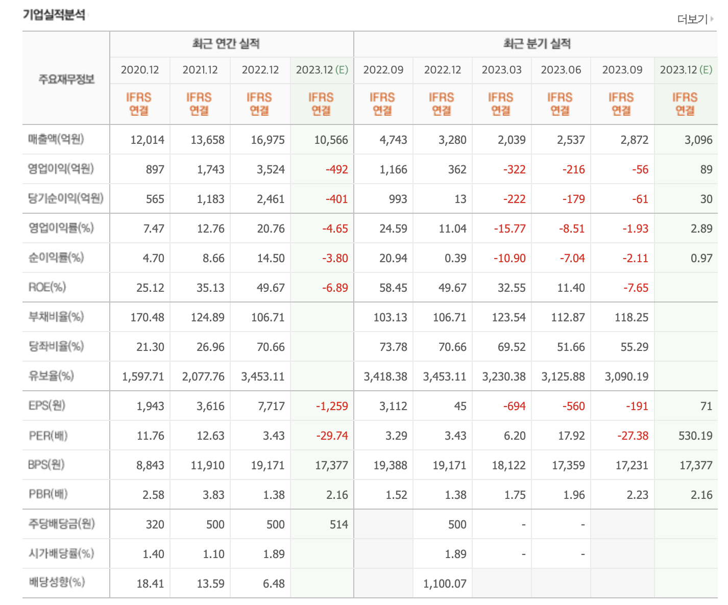 배당수익률 : -