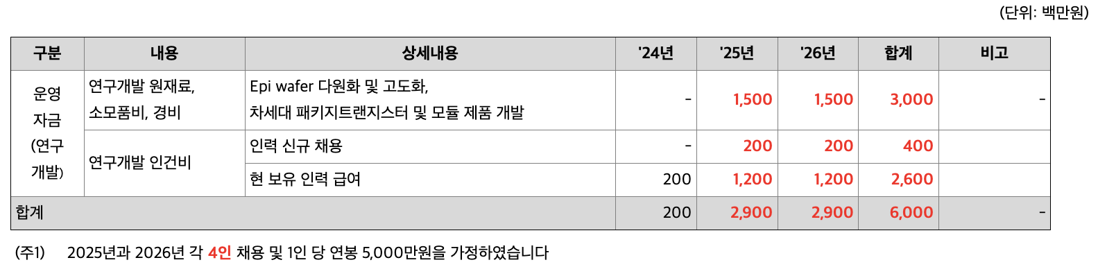 ✓  기술개발을 위한 원재료(Epi wafer 등) 및 소모품 구매