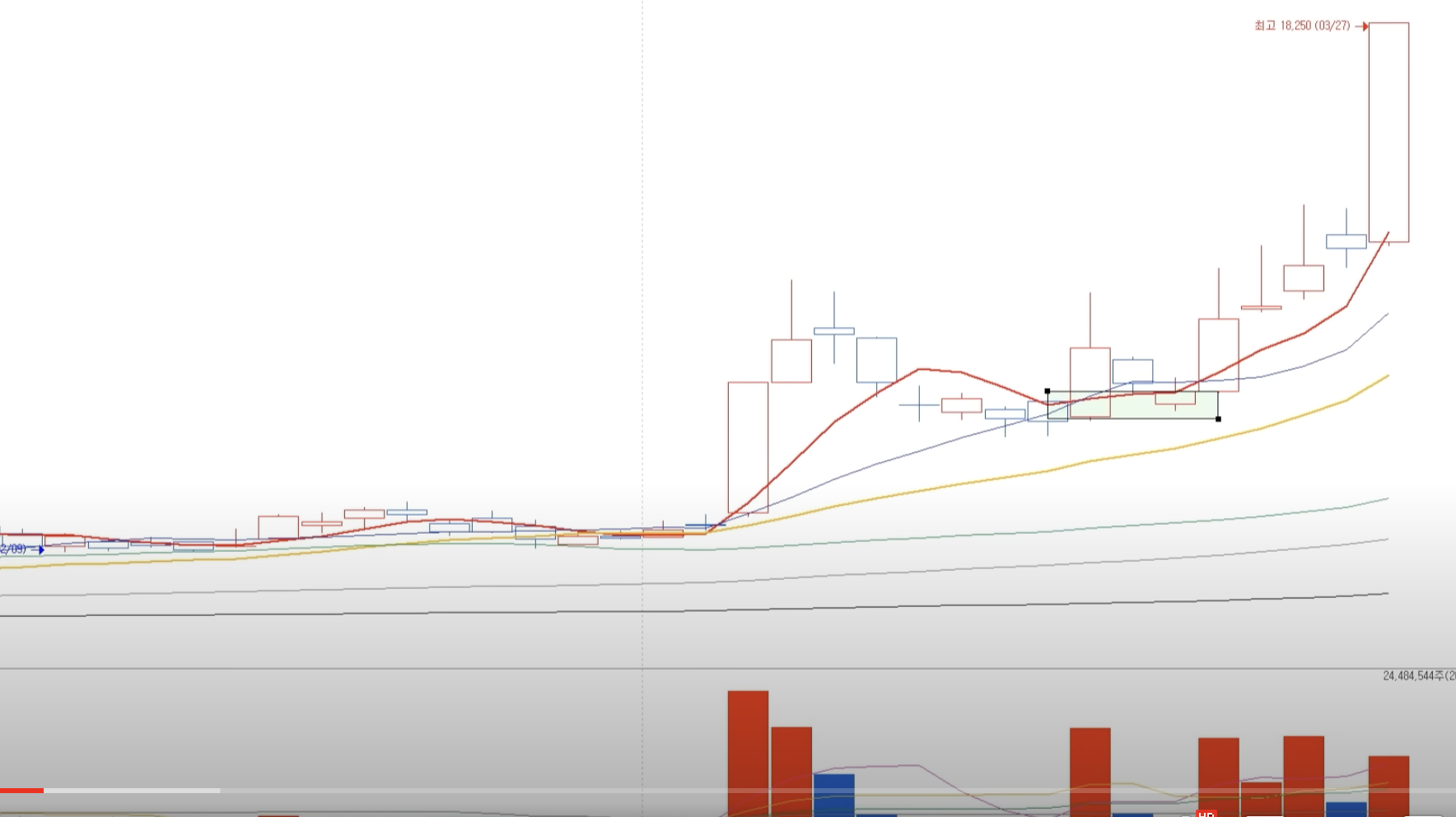 - 거래량이 실린 양봉이 지속적으로 나올때 스윙매매자들은 단기 고점이라고 생각함, 따라 붙지 않음