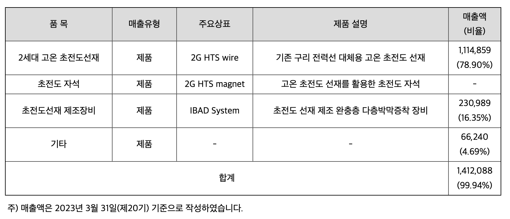 [ 주요 매출현황 ]