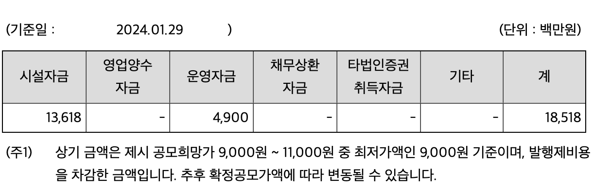 희망 공모가 밴드 : 9,000원~ 11,000원