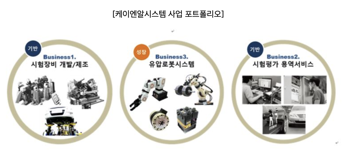 케이엔알시스템은 로봇 뿐만 아니라 자동차, 철도, 토목, 에너지 등 다방면의 산업에 사용되는 시험장비 사업도 영위하고 있습니다. 특히 유압 시스템 구축 분야에선 국내 유일하게 글로벌 시장에서 기술력을 인정받고 있습니다.