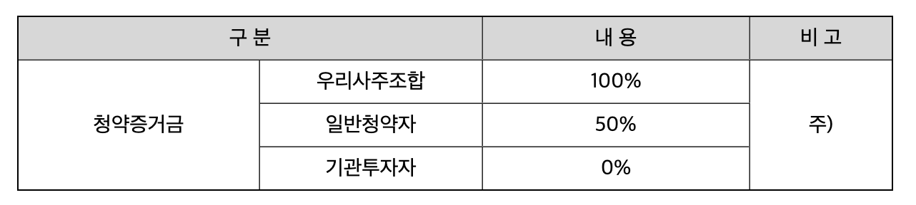 우리사주조합의 청약증거금은 청약금액의 100%이고, 일반청약자는 청약금액의 50%입니다.