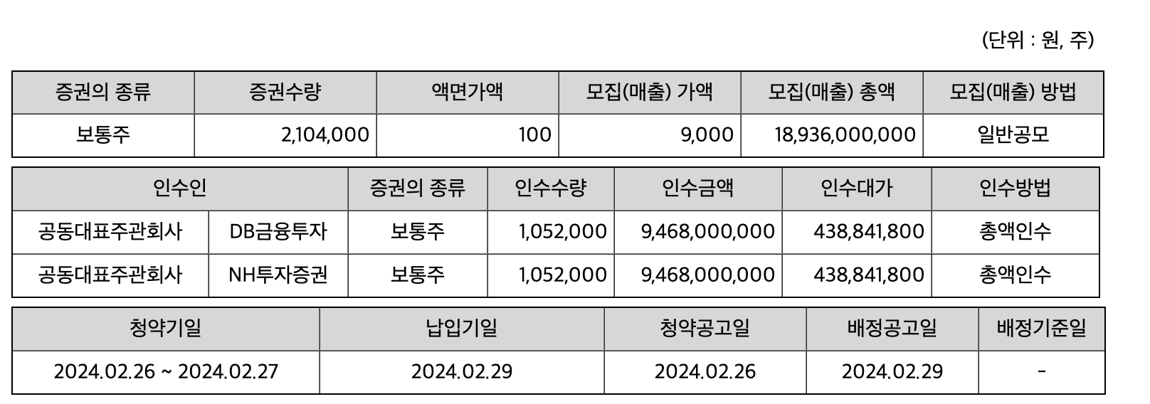 공모가액 확정공고 : 2024년 2월 23일