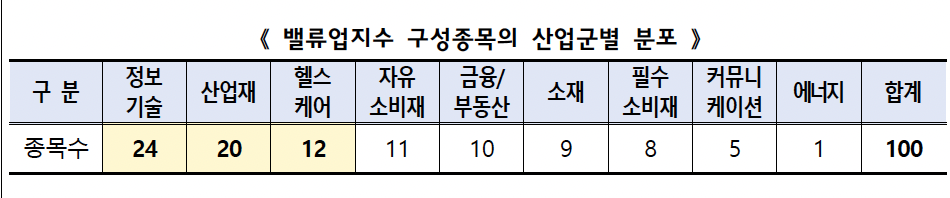 코리아 밸류업 구성 종목 산업분포