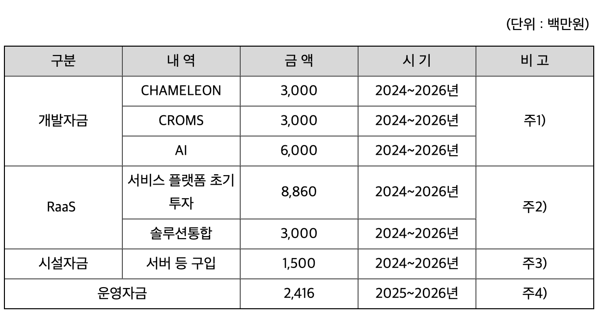 클로봇은 이번 공모를 통한 자금으로 연구개발비, 시설자금 및 운영자금으로 사용할 계획입니다.
