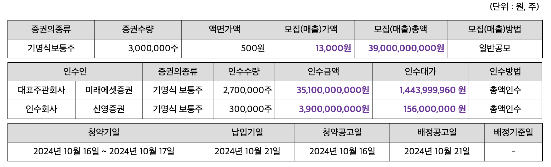 배정/증거금 환불 : 2024년 10월 21일
