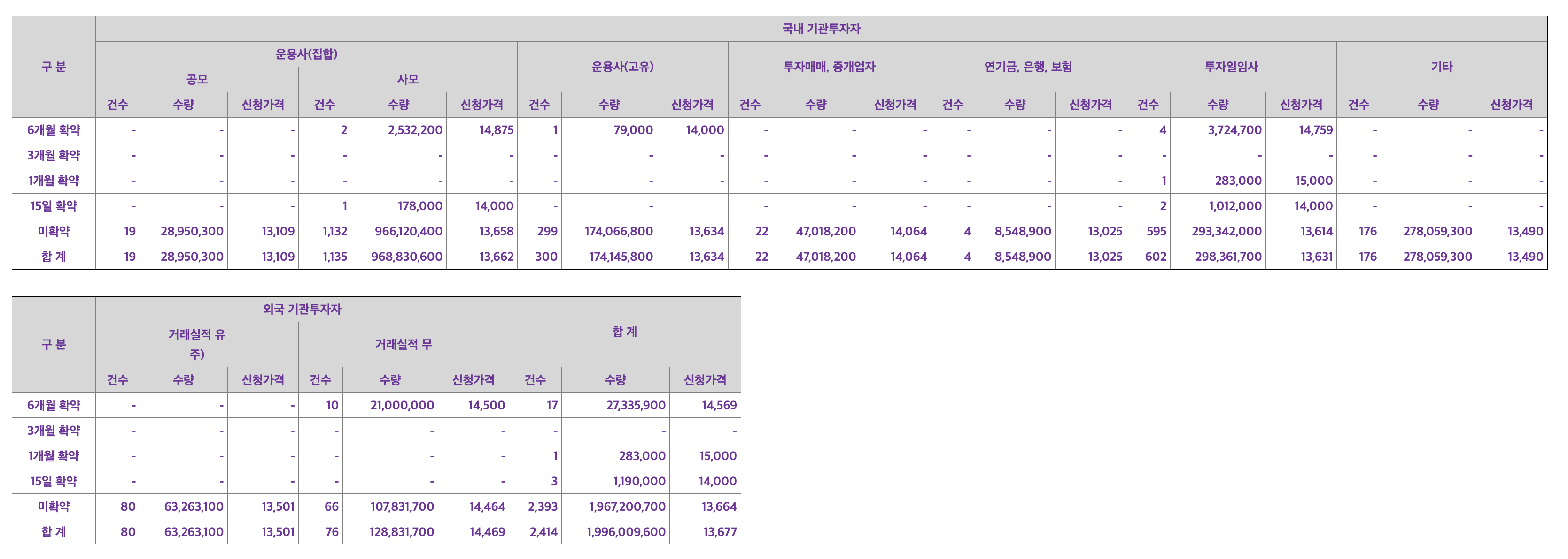 이번 참여 기관들은 95.3%가 확정공모가 13,000원 이상의 가격을 제시했습니다. 의무보유확약 비율은 1.44%로 낮습니다.