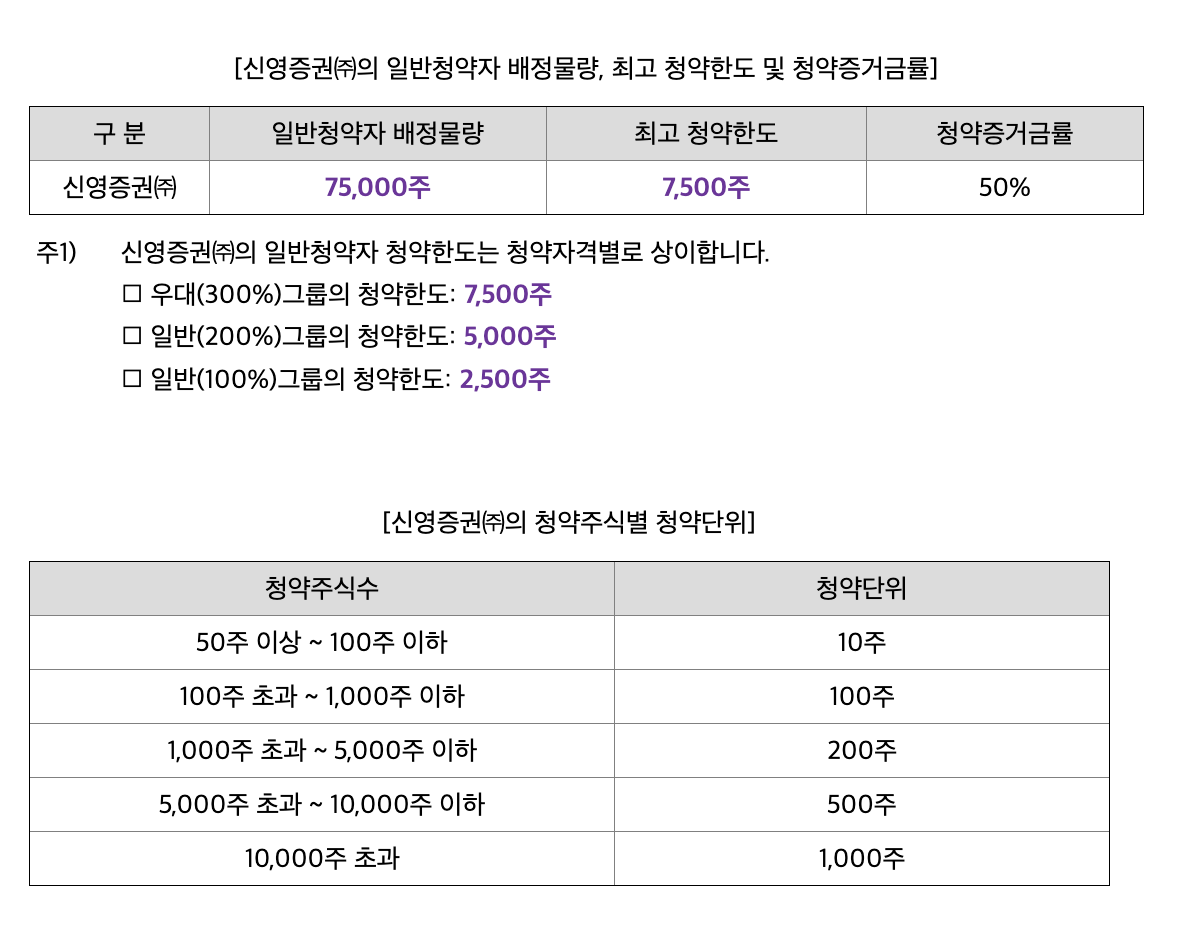 | 최소청약주식수 | 20주 | 50주 |