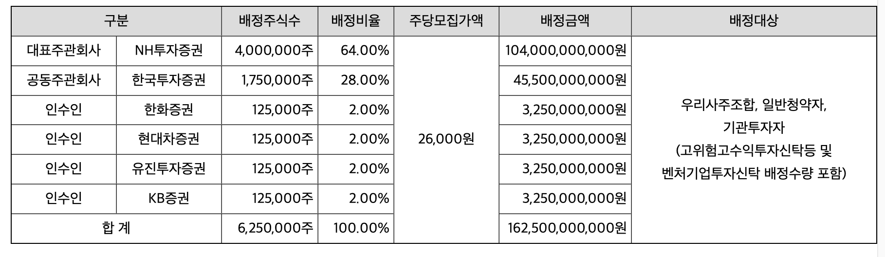 청약증권사 : NH투자증권, 한국투자증권, 한화증권, 현대차증권, 유진투자증권, KB증권