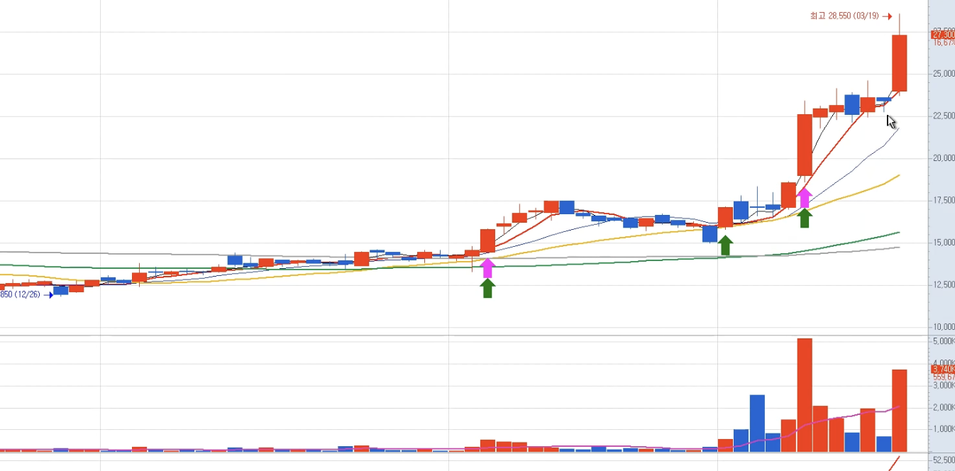 - 급등주는 3일선, 5일선에서 지지받는 경우가 많음