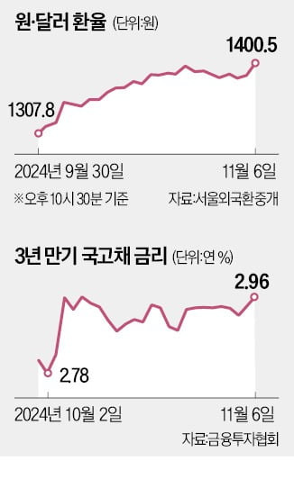 韓 금융시장 덮친 '트럼프 트레이드'…환율 1400원 찍었다